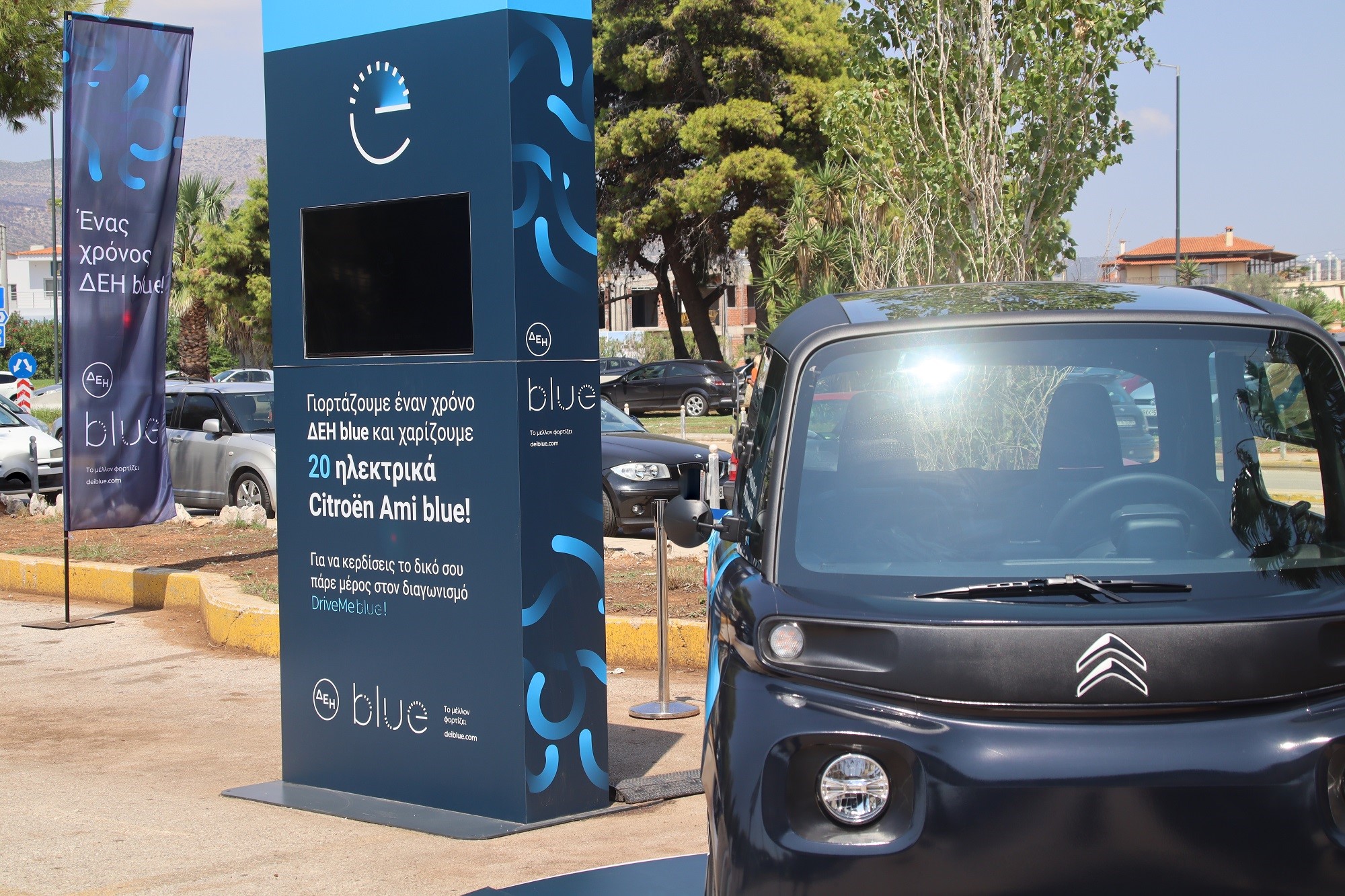 Η ΔΕΗ blue, ο ολοκληρωμένος πάροχος λύσεων ηλεκτροκίνησης σε ιδιώτες, επιχειρήσεις και δημόσιους φορείς  και το μεγαλύτερο δίκτυο δημόσιας φόρτισης στην Ελλάδα με ενέργεια αποκλειστικά από ανανεώσιμες πηγές, κλείνει έναν χρόνο λειτουργίας και γιορτάζει διοργανώνοντας διαγωνισμό με δώρο είκοσι (20) Citroën Ami blue.
