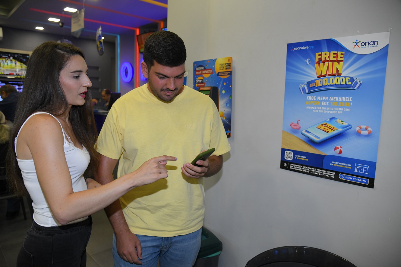 Στους ρυθμούς του FREEWIN κινούνται τα καταστήματα ΟΠΑΠ σε όλη την Ελλάδα με τους παίκτες να διεκδικούν δωρεάν έως 100.000 ευρώ* κάθε ημέρα, μέσω της εφαρμογής OPAP Store App.