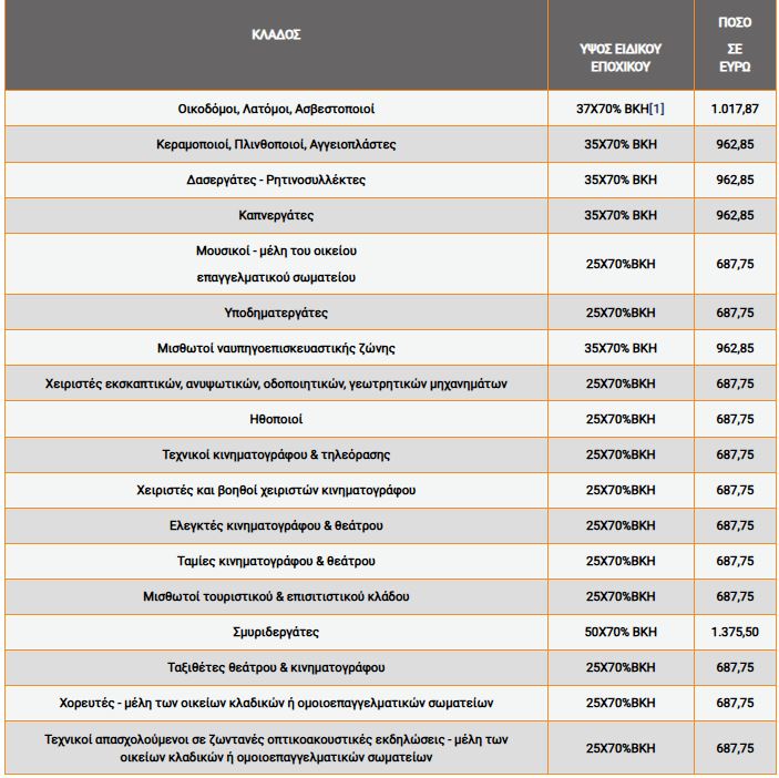 Το επίδομα δικαιούνται τα κάτωθι επαγγέλματα: