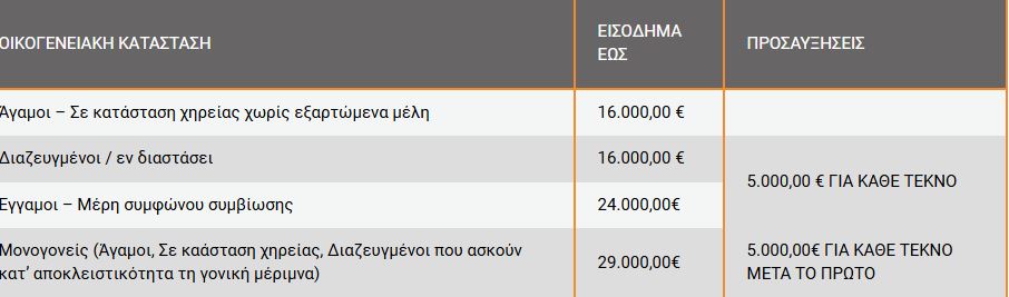 Έτος αναφοράς για τα ως άνω εισοδηματικά κριτήρια αποτελεί το προηγούμενο φορολογικό έτος. Στην περίπτωση που δεν έχει υποβληθεί ακόμη η σχετική φορολογική δήλωση σύμφωνα με τις προβλεπόμενες από την ΑΑΔΕ προθεσμίες, θα λαμβάνεται υπ’ όψιν το εισόδημα του αμέσως προηγούμενου φορολογικού έτους βάσει της σχετικής φορολογικής δήλωσης».