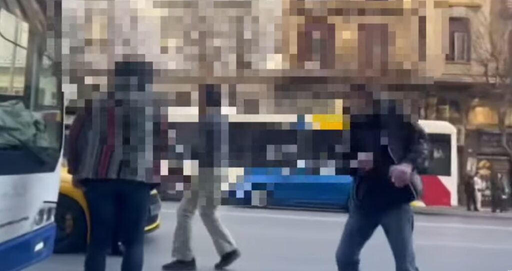Η αντιπαράθεση μετατράπηκε σε συμπλοκή μεταξύ των δύο ανδρών, με εικόνες που δείχνουν τους εμπλεκόμενους να πιάνονται στα χέρια στη μέση του δρόμου.