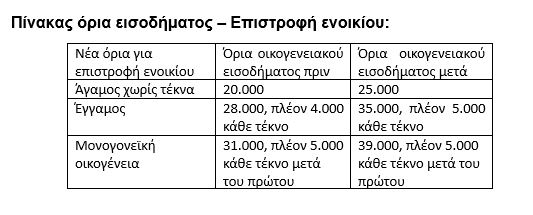 4. Αύξηση ορίων εισοδήματος για την επιστροφή ενοικίου