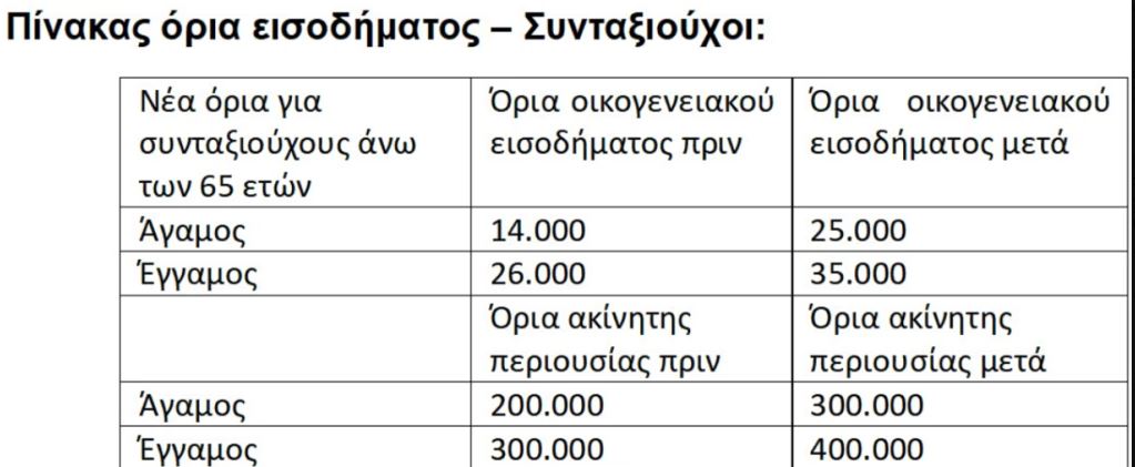 2. Διεύρυνση ορίων εισοδήματος και ακίνητης περιουσίας
